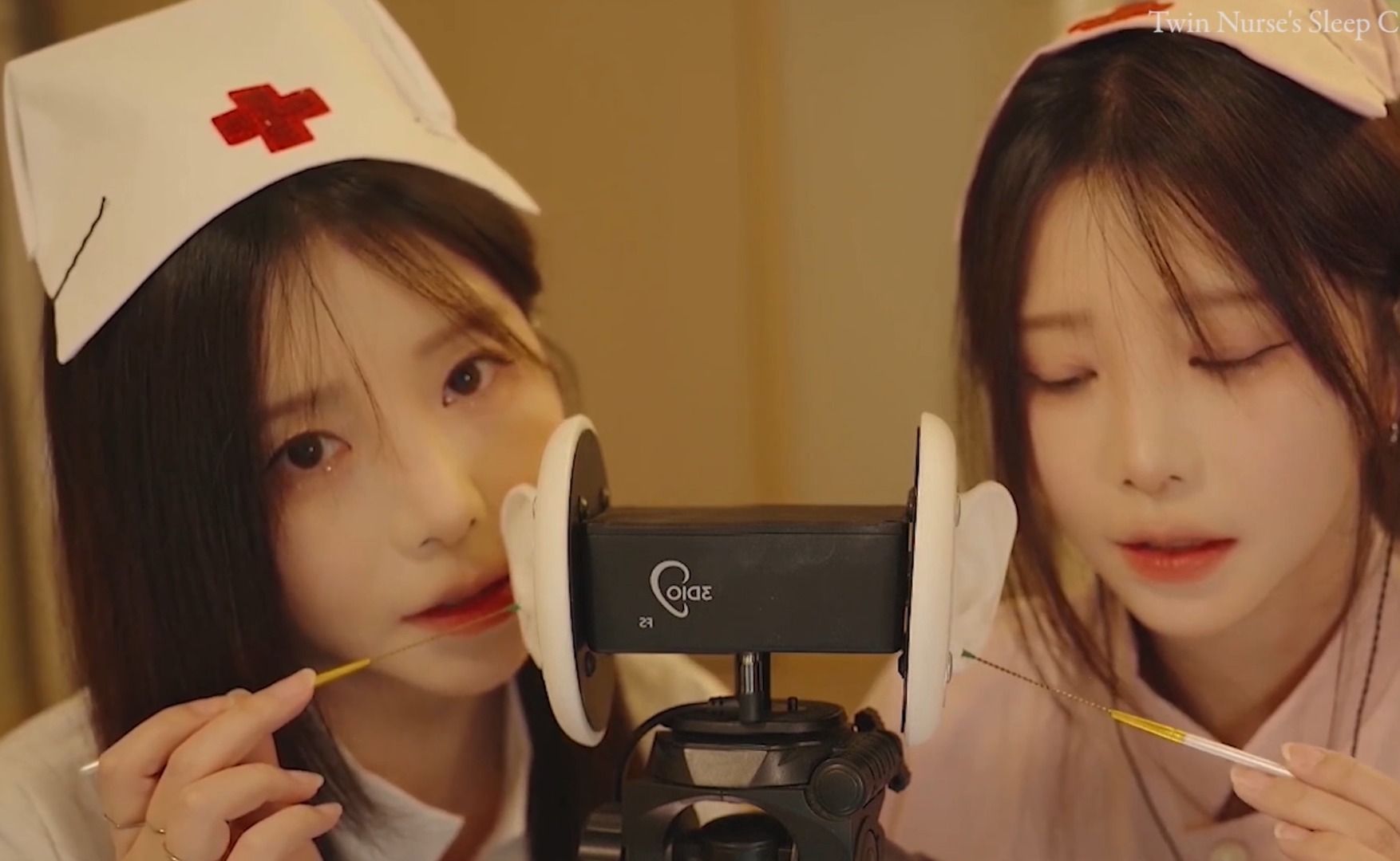最后,yoonying允英展示了一包普通的棉签,这些看似简单的日常用品在她的手中变成了制造细腻声音的工具。她轻轻地将棉签头在麦克风周围滑动,产生几乎听不见但极为舒适的声音。每一个轻触都被放大,并带给观众一种几乎可以触摸到的感觉。